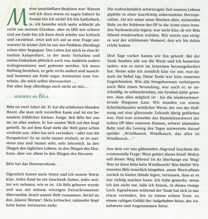 Außerdem aber wurde unser Brief herumgereicht, anderen vorgelesen, weitergschickt, diskutiert und es dauerte nicht lange, da wurden wir gefragt, ob wir ihn nicht der Stiftung "Ja zum Leben" für ihren nächsten Stiftungsbrief zur Verfügung stellen würden. Das hat uns natürlich riesig gefreut. Hier also ist er, nur das Foto ist ein fremdes Baby. Unseres ist natürlich süßer!!! :-). NEU: